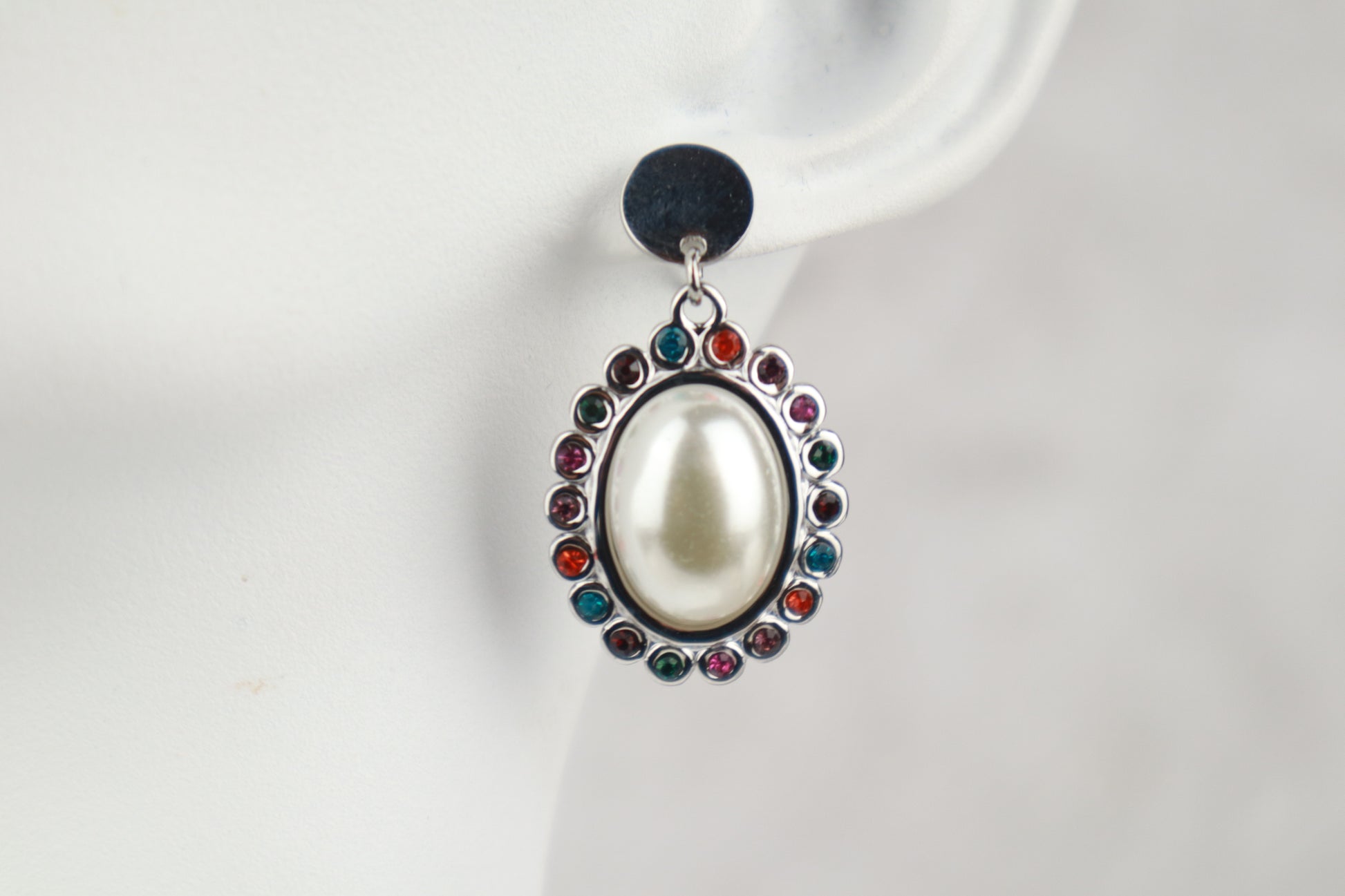 Σκουλαρίκι οβάλ στρας πέρλα